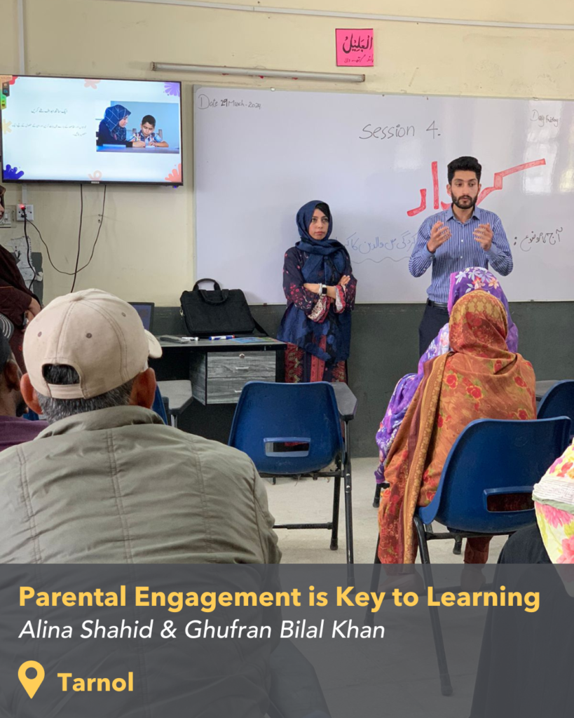 Working closely with over 400 students, their parents, and teachers in Dhoke Paracha, Fellows observed a lack of parental ownership in students’ learning. It was pertinent to raise awareness regarding parents’ role in students’ academic progress and engage them in the learning process. A CPP named ‘Kirdar’ (Character) was initiated to address this challenge.