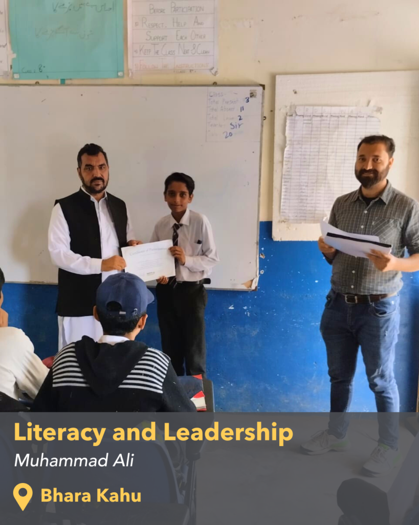 While teaching English and History to grade 6 and 7 students in Kuri, Islamabad, Ali realized that they lacked in two significant areas: mastery in English literacy and harnessing leadership abilities. To overcome these gaps, he envisioned opportunities that could help them improve their English literacy and bring out their hidden leadership potential. This is how Ali’s CPP, the Kuri Learning Center, came into being.