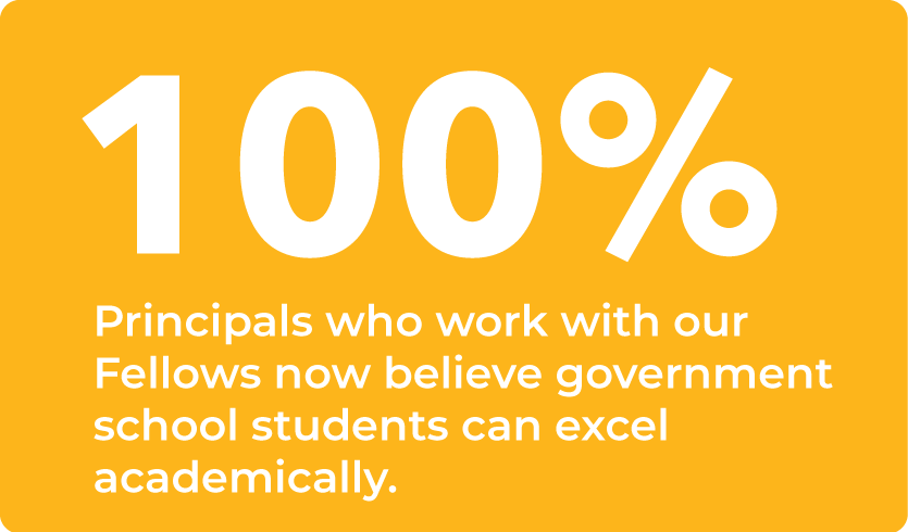 Literacy gaps emanating from wider societal inequities are more pronounced in under-resourced public schools, especially in peri-urban and rural areas. Fellows noticed lack of foundational concepts in English and Science and a general academic disinterest in the school. Teachers usually adopted a one-dimensional way of teaching that encouraged rote learning and many students had never engaged with books outside their curriculum.