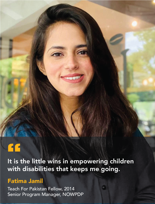 Fatima went on to acquire M.Ed – International Education Policy and Management from Vanderbilt Peabody College as a Fulbright scholar. She has since helped the Government of Sindh create sustainable policies and implementation mechanisms for children with disabilities. She has also helped the State Bank of Pakistan draft recommendations for the financial inclusion of children with disabilities. Fatima is also working with UN Women to improve the life outcomes for women with disabilities.