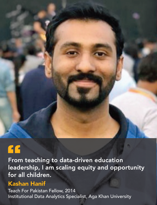Kashan feels that given his interest in data analytics and evidence-based learning, his transition from the Teach For Pakistan Fellowship to The Citizen Foundation, as Program Coordinator of its College program was natural. At the TCF he helped students prepare for higher education and counseled them on the career paths available to them. It proved to be an excellent platform for him to build upon his grassroots experience at the TFP school and scale it up exponentially across the country.