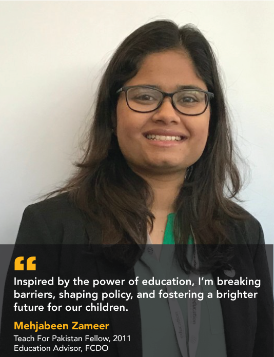 Mehjabeen’s remarkable journey, from her initiation with TFP’s first batch in 2011 to her pivotal role in education reform with the FCDO, exemplifies her dedication to dismantling barriers and reshaping educational landscapes, ultimately empowering countless young minds in Khyber Pakhtunkhwa.